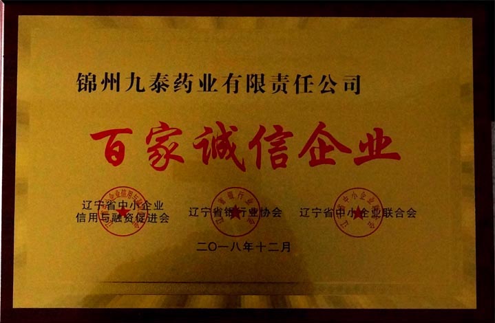 公司被省中小企業(yè)信用與融資促進會、省銀行業(yè)協(xié)會、省中小企業(yè)聯(lián)合會授予遼寧省“百家誠信企業(yè)”榮譽稱號。