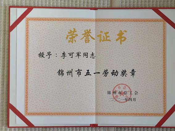 日,李可軍董事長榮獲“錦州市五一勞動獎(jiǎng)?wù)隆睒s譽(yù)稱號。